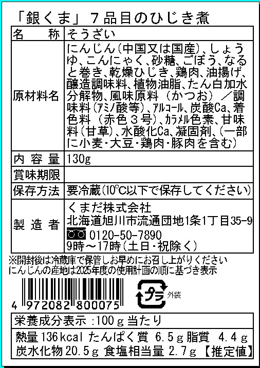 食感の良い切干大根と4種類の具材(ひじき・人参・さつま揚げ・油揚げ)を薄味に炊き上げました。