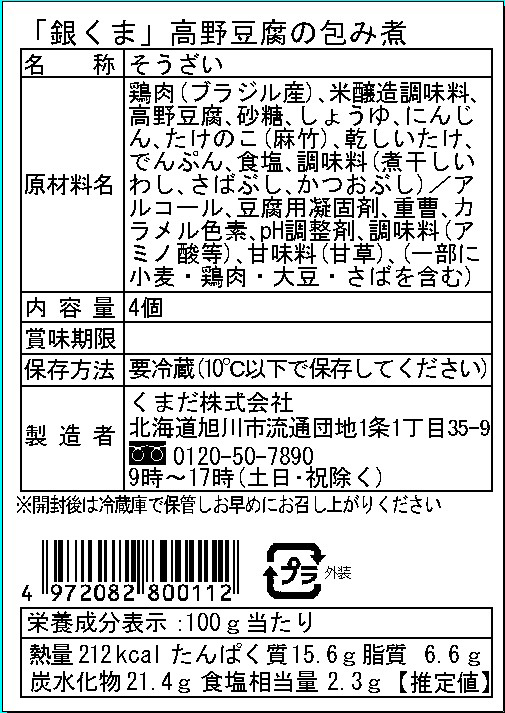 高野豆腐に鶏肉・椎茸・筍を詰めこみました。具材のうま味がしみ込んだ一品です。